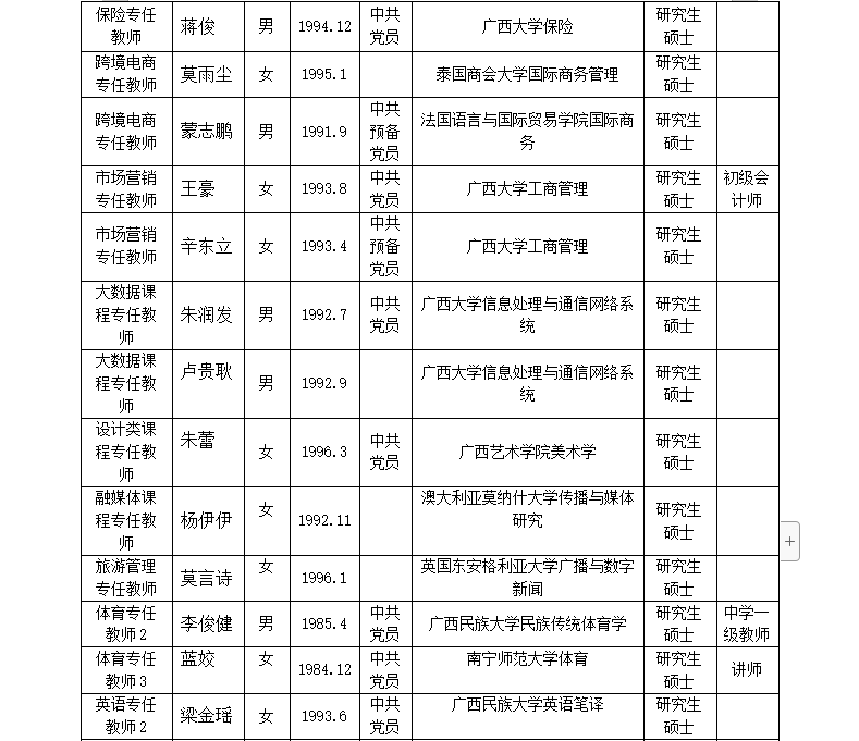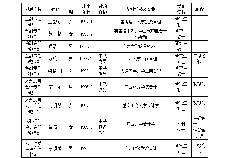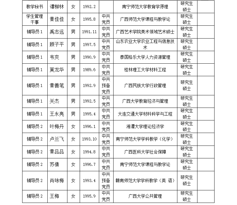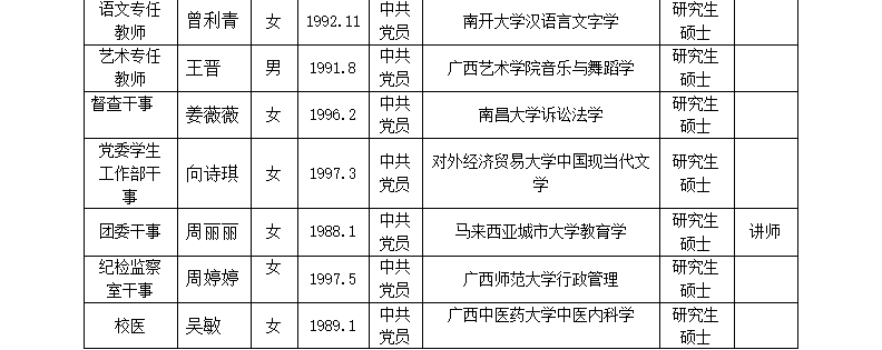 根据《关于印发<广西壮族自治区事业单位公开招聘人员实施办法>的通知》(桂人社发[2011]155号)及《taptap点点体育2022年第一批公开招聘非实名人员控制数工作人员公告》的有关规定,通过报名、资格审查、考试、考核、体检等程序,经研究决定,拟聘王楚桐等44位同志为taptap点点工作人员。现将拟聘用人员名单予以公示,公示时间为2022年8月30日-2022年9月5日,如有异议,请于9月5日下午5:00前以书面形式并署真实姓名反馈到学院纪委或组织人事处。联系地址:广西南宁市大学西路168号,邮政编码:530007,联系电话:0771—3481338,0771—3481779。