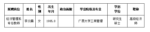 根据《关于印发<广西壮族自治区事业单位公开招聘人员实施办法>的通知》(桂人社发[2011]155号)及《taptap点点体育2022年公开招聘高级职称人才公告》的有关规定,通过报名、资格审查、考试、考核、体检等程序,经研究决定,拟聘李炎蔓同志为taptap点点工作人员。现将拟聘用人员名单予以公示,公示时间为2022年9月20日-2022年9月26日,如有异议,请于9月26日下午5:00前以书面形式并署真实姓名反馈到学院纪委或组织人事处。联系地址:广西南宁市大学西路168号,邮政编码:530007,联系电话:0771—3481338,0771—3481779。