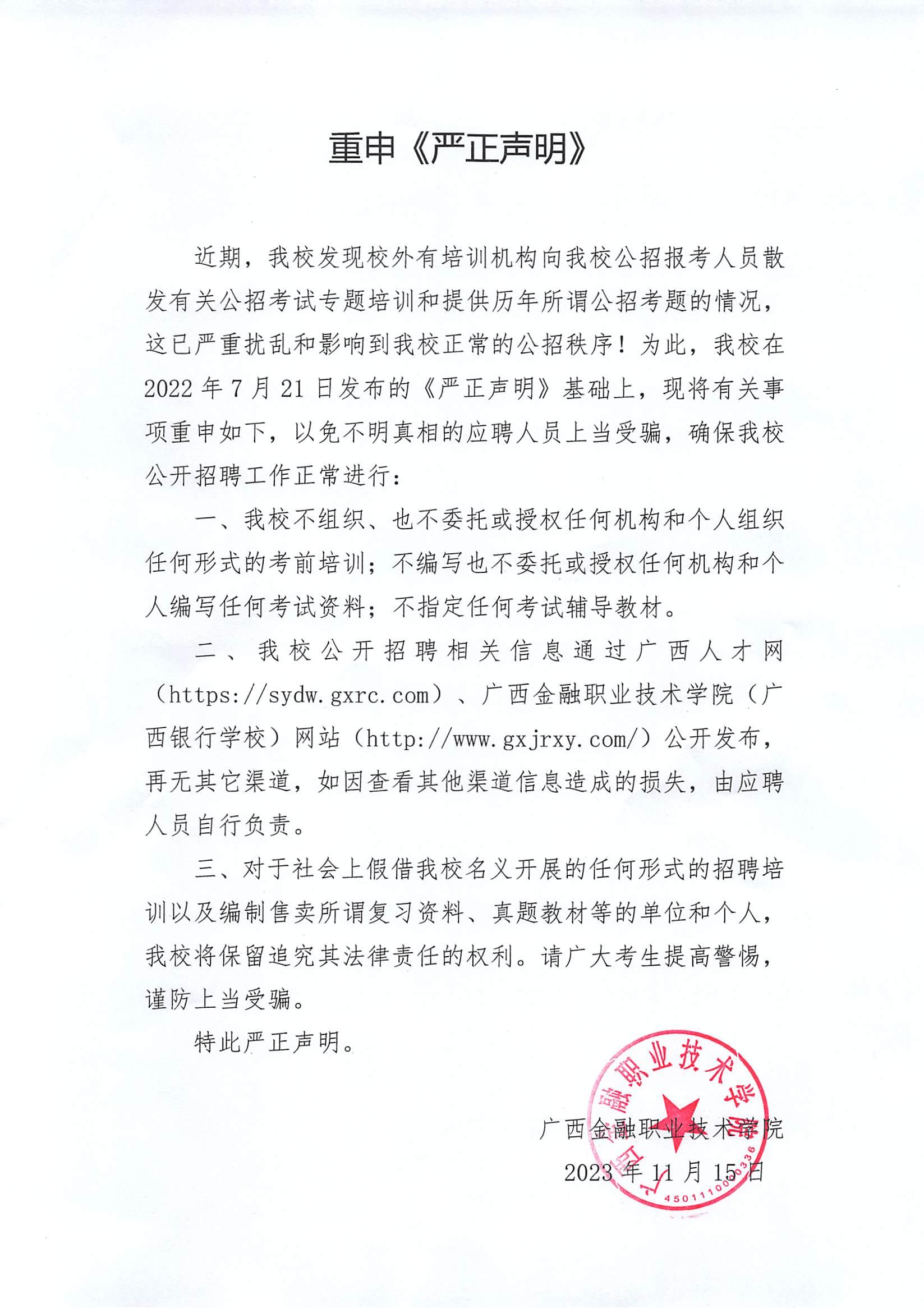 重申《严正声明》