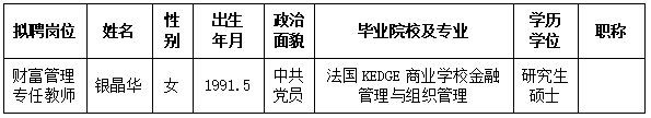 根据《关于印发<广西壮族自治区事业单位公开招聘人员实施办法>的通知》(桂人社发〔2011〕155号)及《taptap点点体育2023年第二批公开招聘非实名人员控制数工作人员公告》的有关规定,通过报名、资格审查、考试、考核、体检等程序,经研究决定,拟聘银晶华同志为taptap点点工作人员。现将拟聘用人员名单予以公示,公示时间为2024年2月25日-2024年3月2日,如有异议,请于2024年3月2日下午5:00前以书面形式并署真实姓名反馈到学院纪委或组织人事处。联系地址:广西南宁市大学西路168号,邮政编码:530007,联系电话:0771—3481338,0771—3481779。
