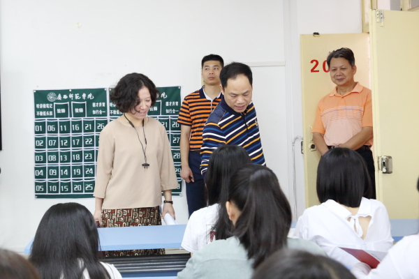 院长莫海燕、副院长谢沛善检查长岗校区学生上课情况