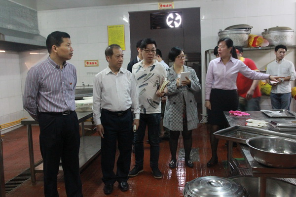 党委副书记、纪委书记刘华政,院长助理罗坚检查东校区食堂卫生