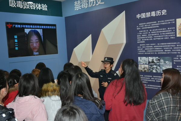 此次活动得到了广西第三强制隔离戒毒所的大力支持和配合,在戒毒所的禁毒教育基地,警官们不仅向同学详细地介绍了我国禁毒历史、广西禁毒工作的重要性、各类毒品的危害性,还通过互动活动、宣传短片教育等方式,让学生们学会如何安全防范、保护自己不受毒品危害。
