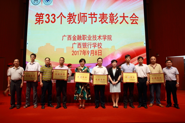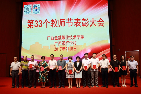 表彰大会在庄严的国歌声中拉开帷幕,随后教师们集体观看了黄大年同志先进事迹视频,并为离退休教师代表献花。随后,党委书记、院长沈立君、党委副书记刘华政、副院长谢沛善、副院长潘大胜、院长助理罗坚分别宣读了《关于表彰2016--2017学年十佳教师的决定》、《关于表彰2016年度先进集体的决定》、《关于表彰2016年度taptap点点体育(广西银行学校)先进工作者的决定》、《关于给校龄满25年女的教职工及校龄满30年男教职工颁发荣誉证书的决定》、《关于聘任2017年带教指导教师、带教班主任的通知》,学院(校)领导班子为“十佳教师”、“先进集体”、“先进工作者”“校龄满30年教职工”颁奖,对他们的工作和付出予以肯定。
