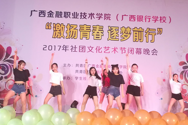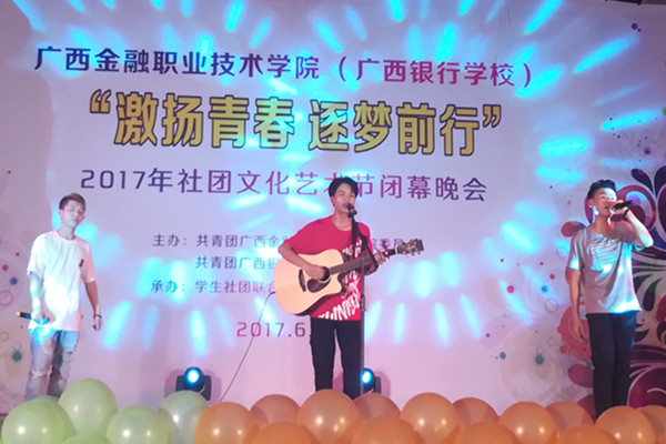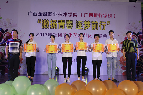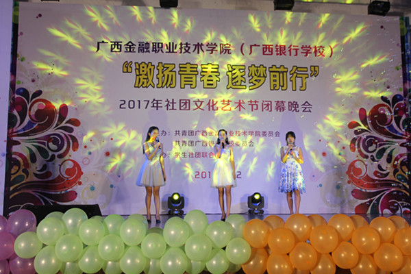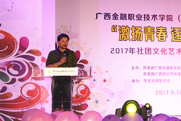 6月12日晚,taptap点点(校)东校区大礼堂内流光溢彩、热闹非凡。以“激扬青春 逐梦前行”为主题的2017年社团文化艺术节闭幕晚会在此隆重举行。党委副书记、纪委书记刘华政,团委书记、学生工作与招生就业处副处长周海峰、院团委全体委员及15所驻邕大中专兄弟院校的社团代表观看了晚会。