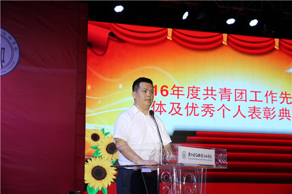 覃艳娟书记为晚会致辞。她向受表彰的先进集体和先进个人表示祝贺,并对长期以来致力于共青团工作的团学干部表示感谢。她说,在过去的一年里,学院(校)团委在组织建设、制度建设、学生社会实践和校园文化建设等方面都取得了良好成绩,为学院(校)的发展做出了很大贡献。在新的形式下,共青团工作要继续紧跟时代步伐,不断创新工作模式和工作方法,把共青团工作做得更加出彩。为此,她向全体团学干部提出四点要求:一要树立坚定理想信念,不忘初心跟党走;二要刻苦学习,志存高远;三要吃苦耐劳,乐于奉献;四要抓住机遇,服务区域发展。希望广大团员学生珍惜青春年华,抓住机遇,在学习、奉献、奋斗和创造中领悟青春的美丽、实现人生价值。