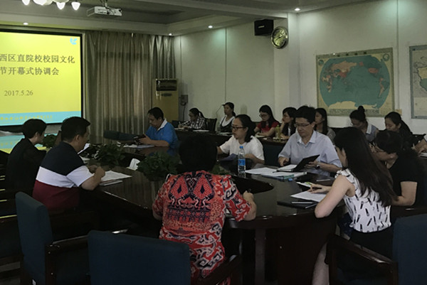 第六届广西区直院校校园文化艺术节开幕式即将在taptap点点举办。为做好相关工作,以良好的精神面貌办好开幕式,5月26日下午,taptap点点在东校区五楼会议室就开幕式的各项工作召开协调会,院长沈立君出席会议。院团委、党政办公室、教务科研处、后勤管理与保卫处、信息管理中心、财务处等相关职能部门负责人,各系团总支负责人,院团委委员参加了会议。会议由团委书记、学生工作与招生就业处副处长周海峰主持。