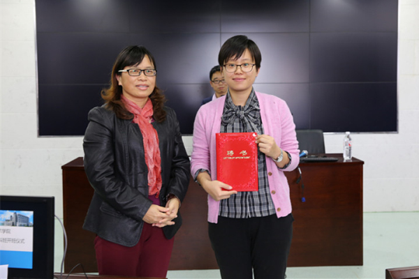 随后,教务科研处韦滨博士做自考本科课程导学发言。最后,学生工作与招生就业处周海峰副处长、金融系王清星主任、会计系张红梅主任分别给学员寄语,并代表学院给各班班主任和任课老师颁发了聘书。