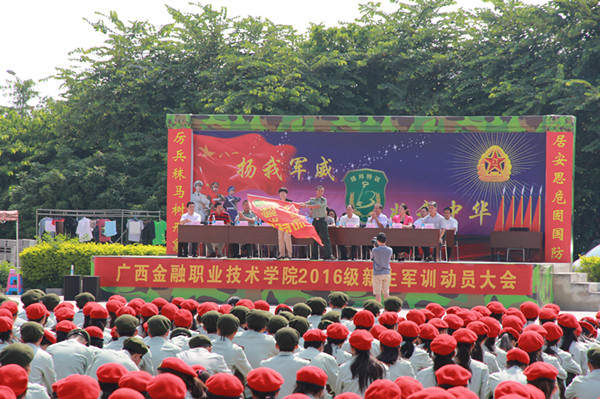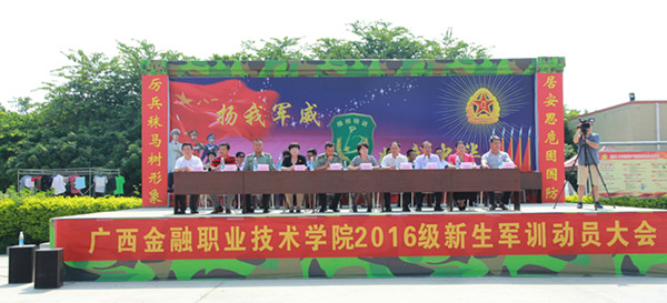9月19日上午,taptap点点2016级新生军训动员大会在广西绿邦国防教育训练基地隆重举行。广西绿邦国防教育训练基地主任刘成华,军训团团长张彦华,党委书记覃艳娟,院长沈立君,党委副书记、纪委书记刘华政,副院长谢沛善,院长助理罗坚,各系、部及军训办领导出席大会。