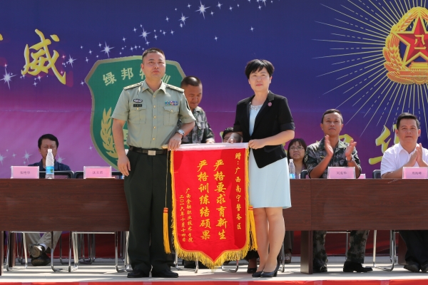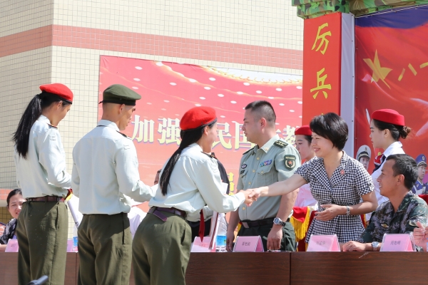 方队表演过后,军训团团长张艳华宣读军训先进集体和先进个人名单,学院领导和军训办领导为获奖的集体和个人进行颁奖。同时,沈立君院长还向承训单位赠送锦旗,对承训单位的领导和教官们表示感谢。