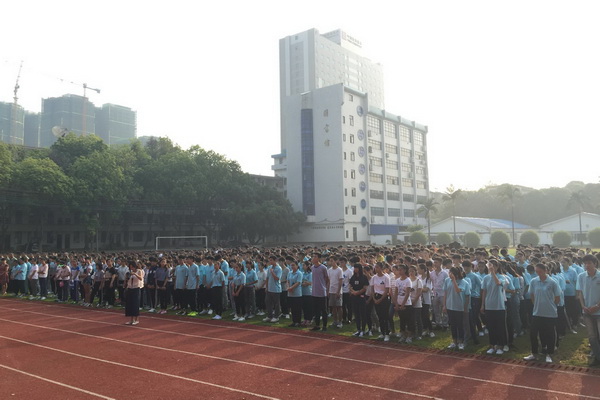 8月24日上午8:00,广西银行学校2016级新生军训动员大会在校田径场举行。党委副书记、纪委书记刘华政,军训团团长梁仁安,政委潘洪宇出席了大会。