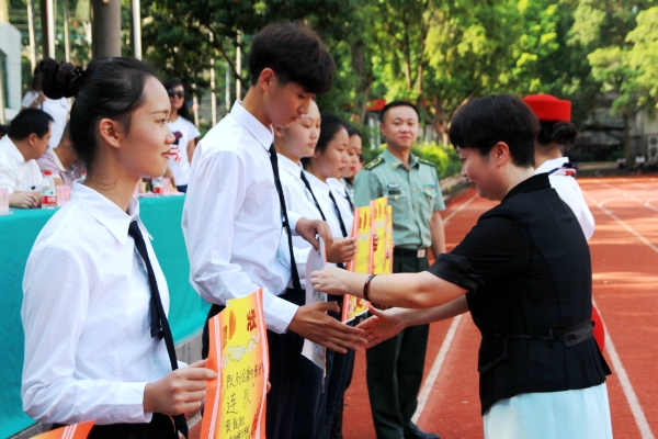 会操表演结束后,军训团团长谢二宣读队列、内务和军歌比赛先进集体名单;军训办副主任唐运杰宣读军训先进个人名单。随后,由学校领导为获奖的先进集体和个人进行颁奖,以表彰他们在军训中的优异表现。