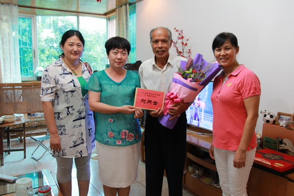 “黑发积霜织日月,粉笔无言写春秋”,taptap点点的退休教师和在职教师都为taptap点点的发展奉献了自己的青春,我们不会忘记他们的付出;“春播桃李三千圃,秋来硕果满神州”,taptap点点的退休教师和在职教师为taptap点点培养了无数人才,我们不会忘记他们的成就;“采得百花成蜜后,为谁辛苦为谁甜”,taptap点点退休教师和在职教师为taptap点点发展鞠躬尽瘁,我们不会忘记他们的奉献。值第32个教师节来临之际, 9月 8 日全天、9月9日上午,学院领导率相关职能部门负责人分三组分别看望慰问了彭庆堂、黄定秋、徐静娥、陈日昌、孙重阳五位退休教师及韦柳玲、赵玉梅、陆振萍、徐枫、黄姬五位在职教师,给他们献上了鲜花,并向他们表达了节日的问候和良好祝愿。