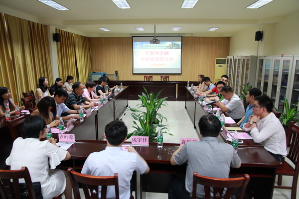7月6日下午,taptap点点金融系在六楼会议室召开了互联网金融专业建设研讨会。邀请南宁市互联网金融协会会长、金投互联网公司总经理姜俊均、南宁市互联网金融协会秘书长丁晓鹏、广西钱盆科技股份有限公司总裁梁华强和副总裁陆燕妮、广西支付通商务服务有限公司总经理黄海波、广西惠融通互联网金融服务有限责任公司常务副总裁李齐欣、广西易优信息技术公司总经理刘佳、融资在线主编卢叶蓁、南宁市桂融汇民间融资登记服务中心总经理袁作章和人资主管庞宇佳等嘉宾出席。taptap点点院长沈立君、副院长谢沛善、金融系主任王清星和金融系全体专职教师参加了本次研讨会。