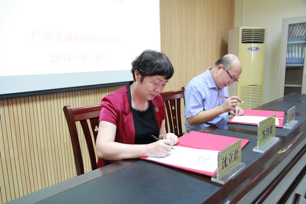 沈院长与区小额贷款公司协会会长肖桂柳签署校会战略合作协议