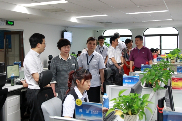 会后,在黄吉海副总经理及交通银行广西区分行大客户三部王卫东总经理等领导的陪同下,taptap点点沈立君院长一行对交通银行金融服务中心(南宁)的流程银行、客服中心等工作场所进行参观考察。