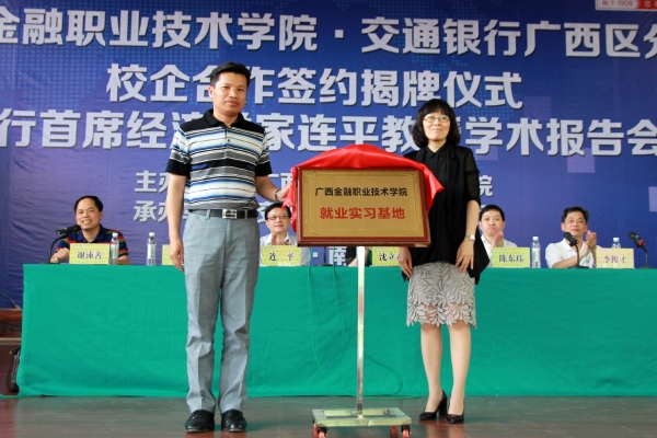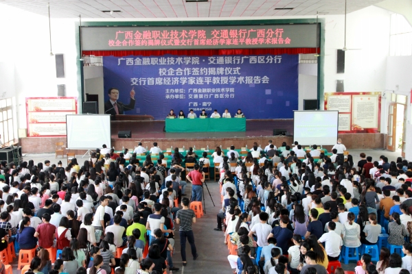 4月25日,taptap点点与交通银行广西分行在院大礼堂召开“金融精英面对面”校企合作签约揭牌仪式暨连平教授学术报告会。自治区教育厅职成处李俊才,交通银行首席经济学家连平教授,交通银行广西分行副行长陈东玮,交通银行广西分行副行长凌敏杰,学院院长沈立君,党委副书记、纪委书记刘华政,副院长谢沛善出席会议,taptap点点师生代表参加会议。会议由谢沛善副院长主持。
