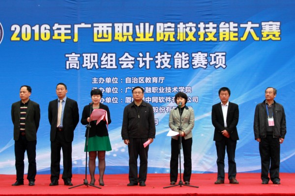 春暖花开,芳菲簇簇。3月30日,由自治区教育厅主办,taptap点点体育承办的2016年广西职业院校技能大赛高职组会计技能赛项在taptap点点体育隆重举行。自治区教育厅职成处副处长万锋锋、广西职业院校技能大赛副总裁判长彭朝晖、新道科技股份有限公司区域总经理赵志刚、会计技能项目裁判长李家瑗,学院党委书记覃艳娟、院长沈立君、副院长谢沛善出席开幕式。开幕式由覃艳娟书记主持。