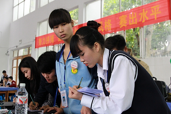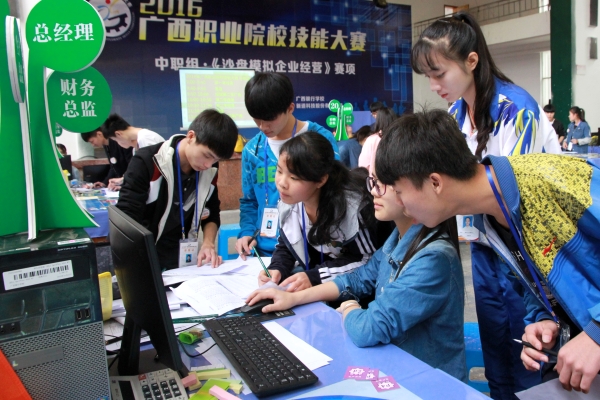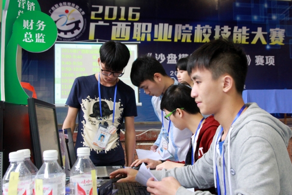 该赛项有来自全区24所学校代表队共120人参赛。采取团队竞赛方式,每支参赛队5名选手,分别担任总经理、财务总监、营销总监、采购总监、生产总监五个角色,模拟一家生产制造型企业,与其他参赛队模拟的同行业企业在同一市场环境中展开企业经营竞争。