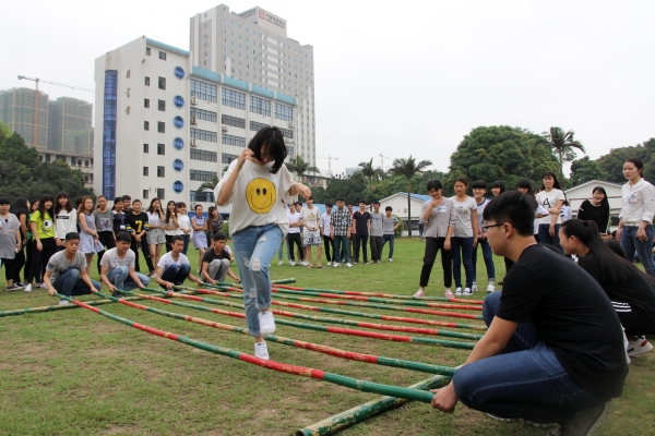 本次体育竞技活动内容主要有:抛绣球比赛、板鞋比赛和竹竿舞比赛等。不少同学是第一次接触抛绣球和竹竿舞比赛,老师耐心地向同学们讲解比赛技巧。一声令下,各项比赛同时开始。在抛绣球比赛现场,只见一名男生把绣球拿在手上转两三圈,然后用力抛向空中,绣球划出一道美丽的弧线。当绣球被投进时,同学们欢呼雀跃,拍手叫好。在板鞋比赛现场,各班参赛队员摩拳擦掌,站好姿势,随着裁判员的一声哨响,队员们配合默契,使出浑身解数向前冲刺,啦啦队的呐喊声浪高一浪。再看竹竿舞比赛现场,参赛队员们随着击杆人员的发出的“一二一”口令有节奏地在竹竿上跳跃,快速灵巧地通过全部竹竿,赢得满堂喝彩;也有个别同学因没掌握好技巧而在跳跃的过程中被竹竿夹住脚,只好从头开始。本次竞技活动内容精彩纷呈,比赛现场气氛活跃,师生们的欢呼声、加油声响彻整个校园。