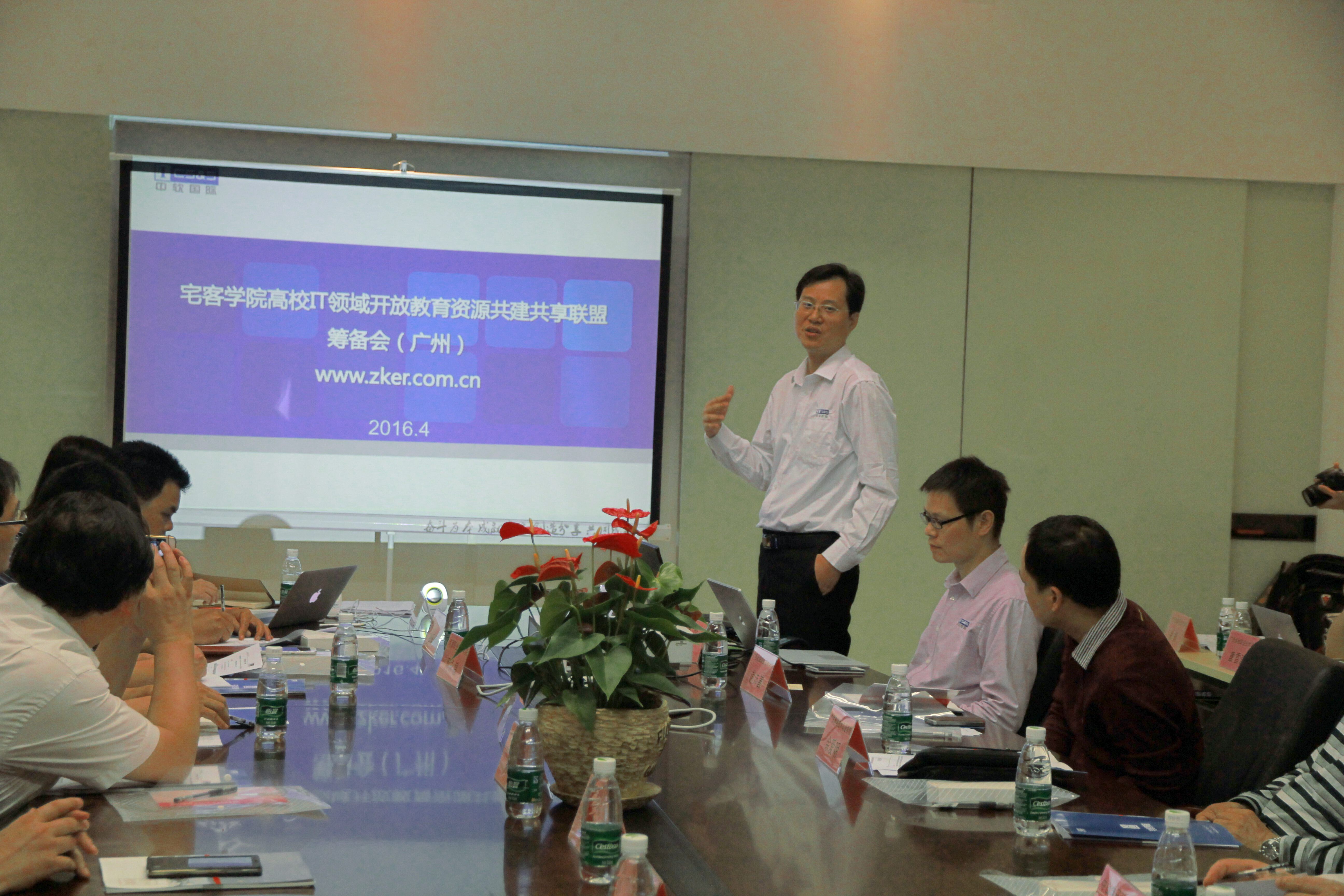 2016年4月14日,学院副院长谢沛善、信息技术系主任唐雪涛、副主任徐枫一行,来到广州科学城创新园,参加由中软国际教育科技集团主办的宅客学院高校IT领域开放教育资源(OER)共建共享联盟筹备会。