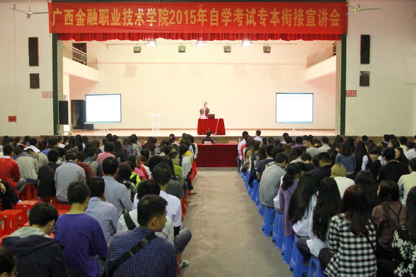 为更好的宣传自学考试专本衔接,提高学生对专本衔接的知晓度,帮助学生搭建提升学历层次平台的桥梁,11月4日晚,学院在大礼堂隆重举行2015年自学考试专本衔接招生宣讲会。