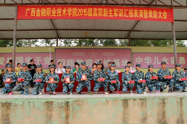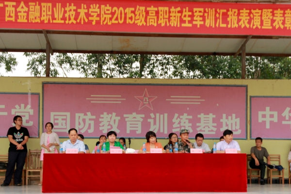 9月21日,taptap点点体育在南宁乡村大世界国防教育基地举行了2015年学生军训会操表演和表彰大会。学院党委书记覃艳娟,国防教育训练基地主任戴伯贤,院长沈立君,党委副书记、纪委书记刘华政,副校长谢沛善,以及党政办、学工处、武装部、相关系部负责人,全体承训教官, 2015级新生参加大会。