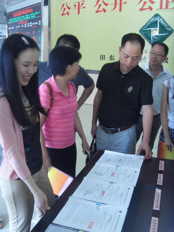 在田东县人民银行行长黄贤才,副行长陈晓萍、黄大庆等领导的陪同下,我们实地走访了田东农村金融服务示范点,并与示范点村支书、村民以及三农金融服务室的工作人员进行了面对面的交流;随后参观田东农村金融改革成果展、农村产权交易中心,深入了解了田东县农村金融改革整体思路、信用体系建设及应用、田东农村产权流转及创新情况。