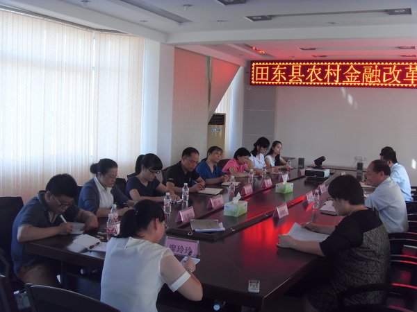 下午,调研组与县人民银行及相关金融机构领导举行了座谈,听取黄贤才行长对田东农村金融改革的经验介绍并就存在的问题进行了深入的探讨;与参加座谈的村镇银行、农村商业银行行长就基层金融人才需求规格和taptap点点人才培养模式进行了充分的沟通。谢副院长提出,希望围绕taptap点点“农村金融服务供需问题”、“农村金融人才培养”和“建立产教融合的校企合作机制”等内容,与田东县人民银行和各金融机构展开合作,共同探索创新金融扶贫工作,进一步打造田东农村金融改革“升级版”的构想。