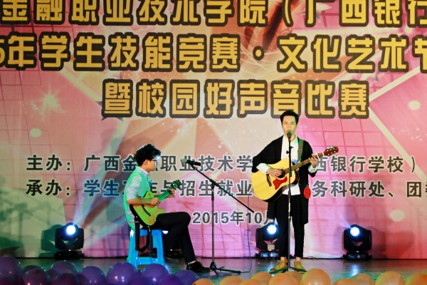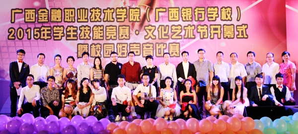 10月19日晚,2015年taptap点点体育(广西银行学校)隆重举行2015年学生技能竞赛· 文化艺术节开幕式暨校园好声音决赛。旨在提供学生很多展示专业技能与文艺特长的平台,帮助学生把握青春、放飞梦想、出彩人生。开幕式由学生工作与招生就业处、教务科研处、团委共同承办。院长沈立君,党委副书记、纪委书记刘华政,副院长谢沛善及中层领导出席本次开幕式。