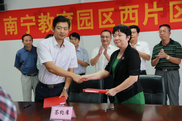 9月14日,南宁市教育园区西片区项目签约仪式在广西东盟经济技术开发区管理委员会隆重举行。taptap点点沈立君院长率团出席签约仪式,并签定了土地使用意向协议。