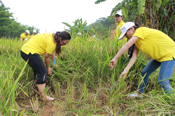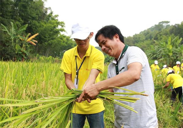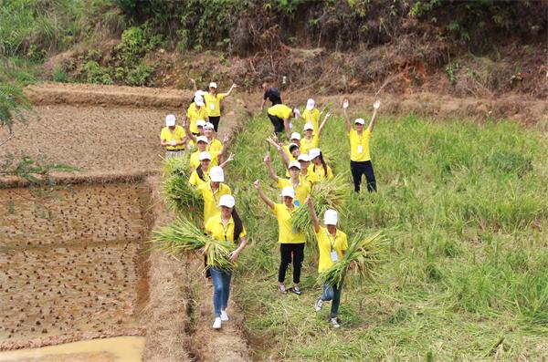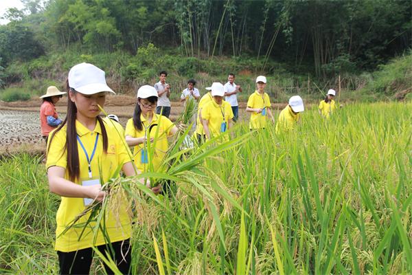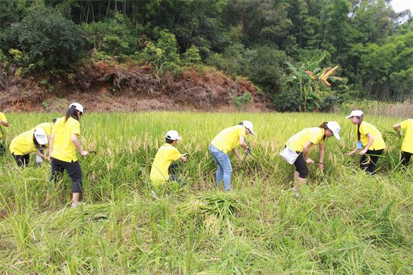 7月19日,taptap点点体育大学生暑期“三下乡”社会实践活动服务队顶着烈日深入田间地头为村民收割稻谷。