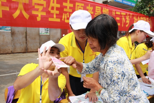 期间,覃书记一行也亲自参与到taptap点点开展的点钞技能、辨别真伪钞、金融防范知识、社会经济状况调查等志愿服务项目,并深入宿舍、食堂了解关心志愿服务队生活。在听取了taptap点点志愿者服务队开展工作情况汇报后,她充分肯定了服务队在特色活动工作上取得的成效。覃书记指出,三下乡是一次很宝贵的社会实践体验,经过亲身体会会让人变得更加成熟稳重,希望全体队员们要大力发扬不怕苦不怕累的优良作风,珍惜机会,真正把社会实践活动做好做实。