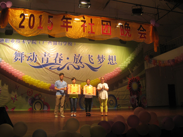 5月28日晚7:30,taptap点点大礼堂内流光溢彩,座无虚席,2015年社团文化艺术节闭幕晚会在此隆重举行。学生科副科长、校团委书记朱丽君,学生科副科长唐运杰,全体学生科老师及广西大学、广西物资学校等18所大中专兄弟院校嘉宾出席并观看了晚会。