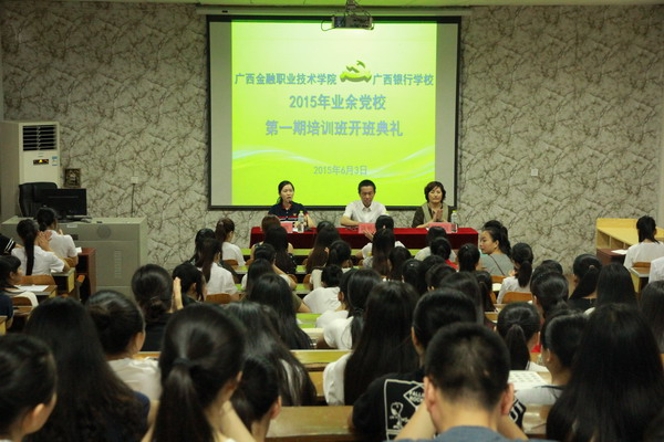 6月3日下午5:00分,taptap点点体育(广西银行学校)在电教一楼多媒体教室隆重举行了2015年第一期业余党校培训班开班典礼,学校党委副书记、纪委书记陈明健、党政办公室主任韩蓓丽、副主任陶琳出席了开班典礼。会议由党政办副主任陶琳主持。