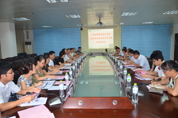 为加强与兄弟院校的交流与合作,拓宽人事制度改革思路,2015年7月2日下午,学院党委书记覃艳娟、副院长谭强及相关处室教师等一行12人赴广西国际商务技术学院就绩效工资改革、科研激励机制等事宜进行考察交流。