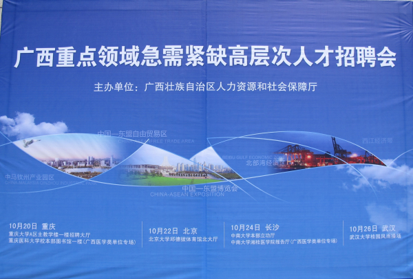 10月19日至27日,taptap点点体育党委书记覃艳娟、院长沈立君率人事处有关负责人一行5人,分赴重庆大学、北京大学、中南大学、武汉大学等四所“985”高校参加2014年广西重点领域急需紧缺高层次人才招聘会。