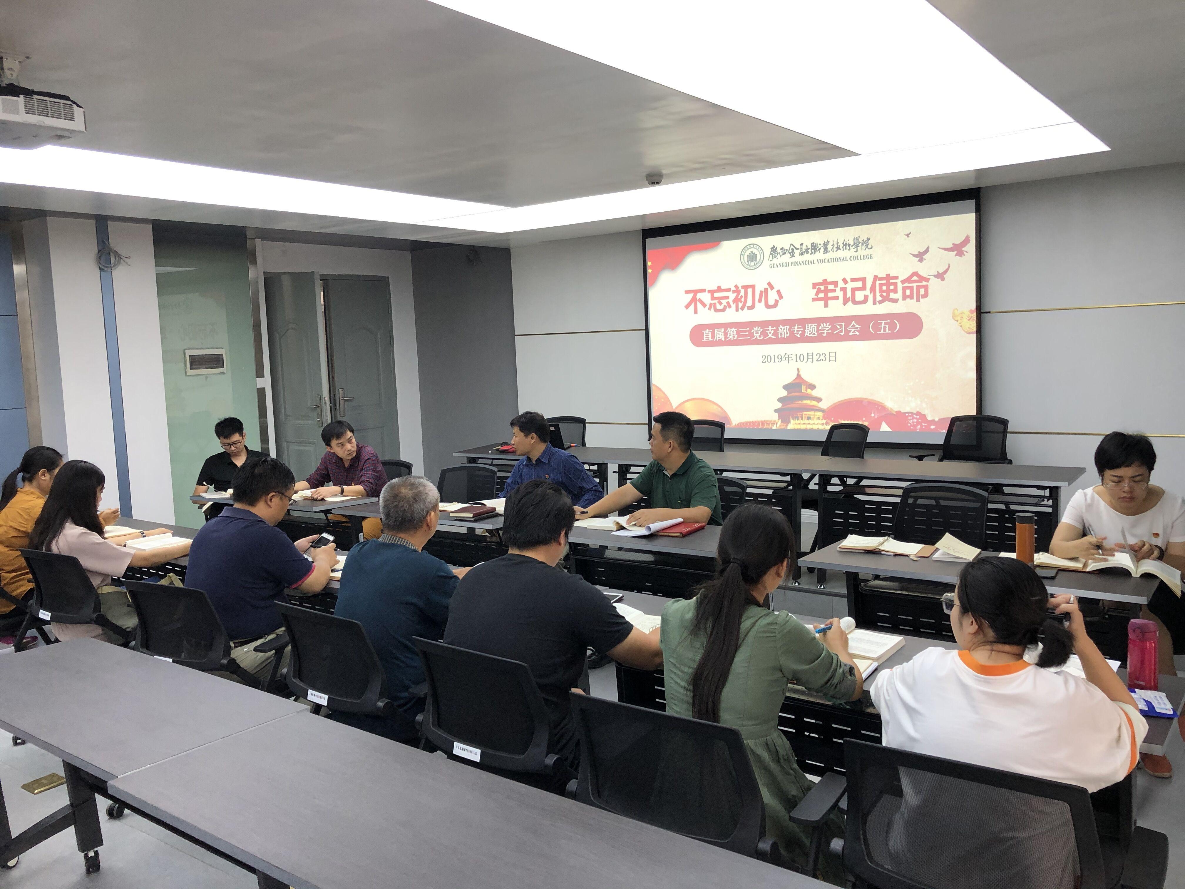 10月23日,直属第三党支部在西校区312会议室召开“不忘立德树人 牢记人才使命”主题教育专题学习交流会。会议由支部党委书记周海峰主持,支部党员参会并发言。