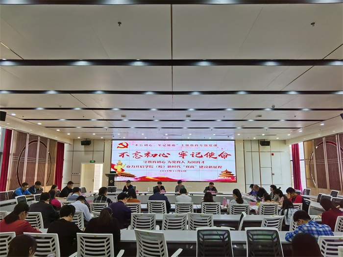 沈立君书记以《守教育初心,为党育人、为国育才,奋力开启学校新时代“双高”建设新征程》为主题给全体党员上主题教育专题党课,她指出,“不忘初心、牢记使命”既是当今政治生活中的一个重要主题,也是中国共产党人的永恒主题还是全体党员、干部的终身课题。沈立君书记还阐释了如何理解和把握中国共产党人的初心和使命、如何围绕学校教育教学事业改革发展守初心、担使命这两块内容,同时要求taptap点点全体教职员工认真对照“守初心、担使命”标准,找差距、查原因,切实增强建设金院、银校的责任感使命感。