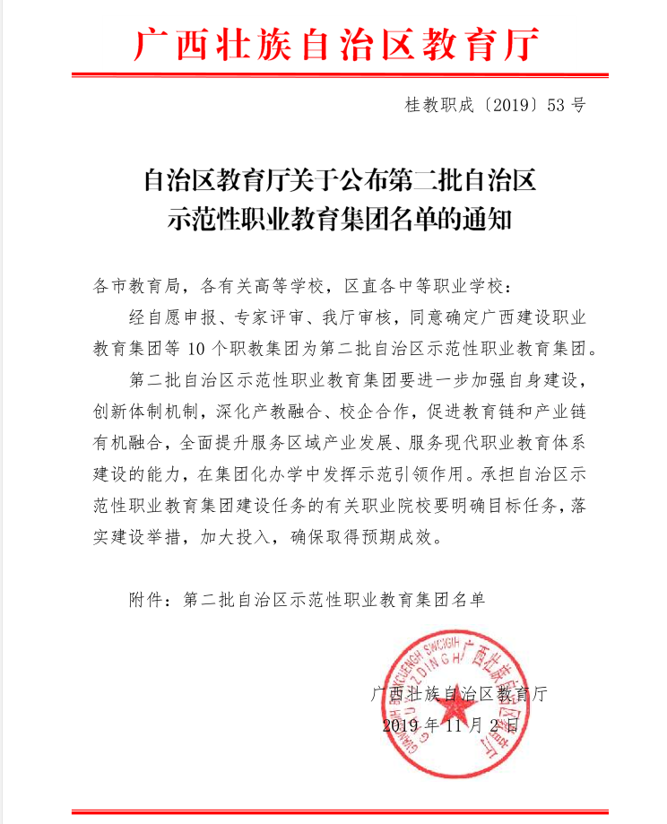 11月2日,广西壮族自治区教育厅下发《自治区教育厅关于公布第二批自治区示范性职业教育集团名单的通知》(桂教职成〔2019〕53号),taptap点点申报的“广西经济贸易职业教育集团”获批为第二批自治区示范性职业教育集团。