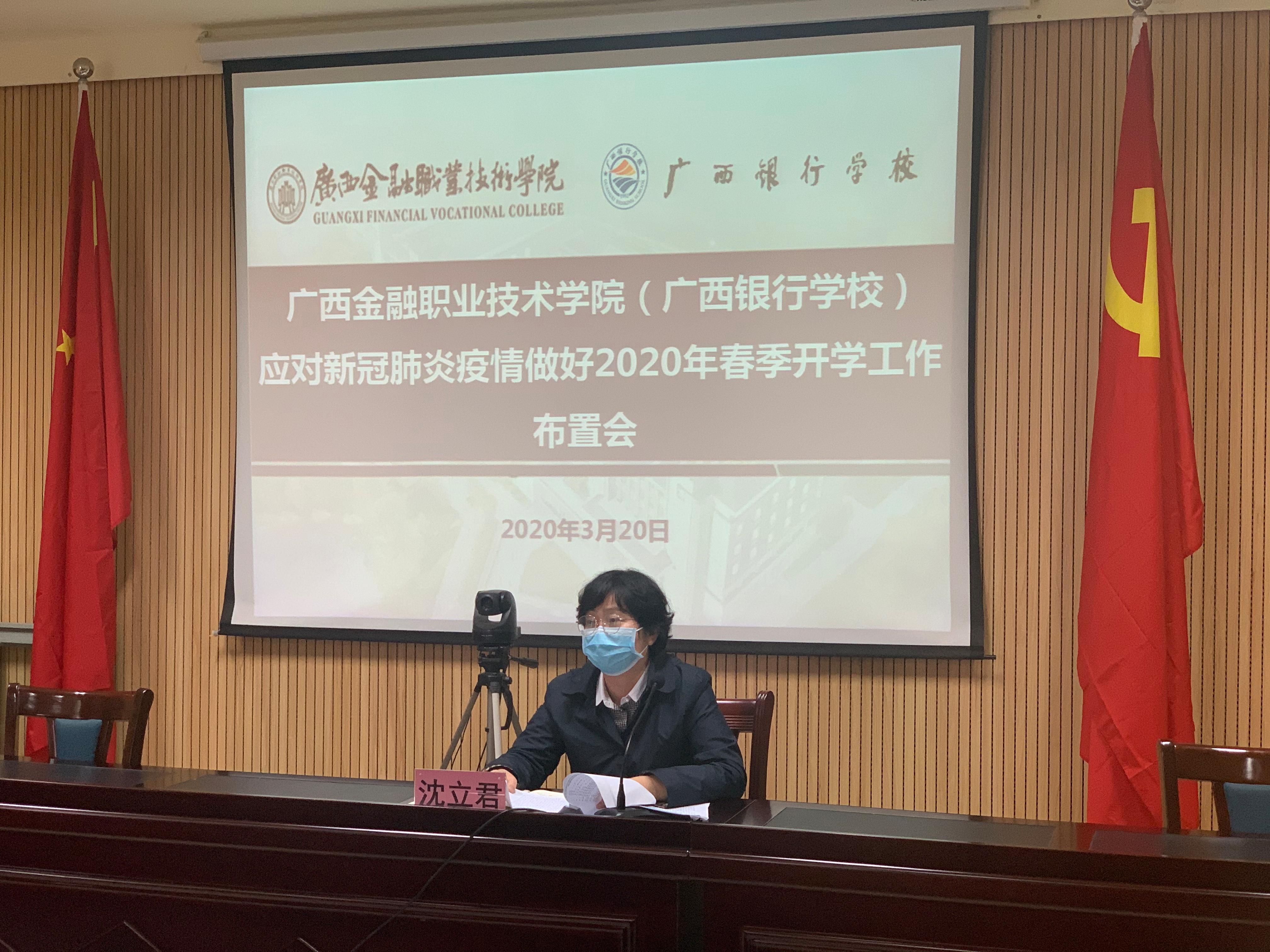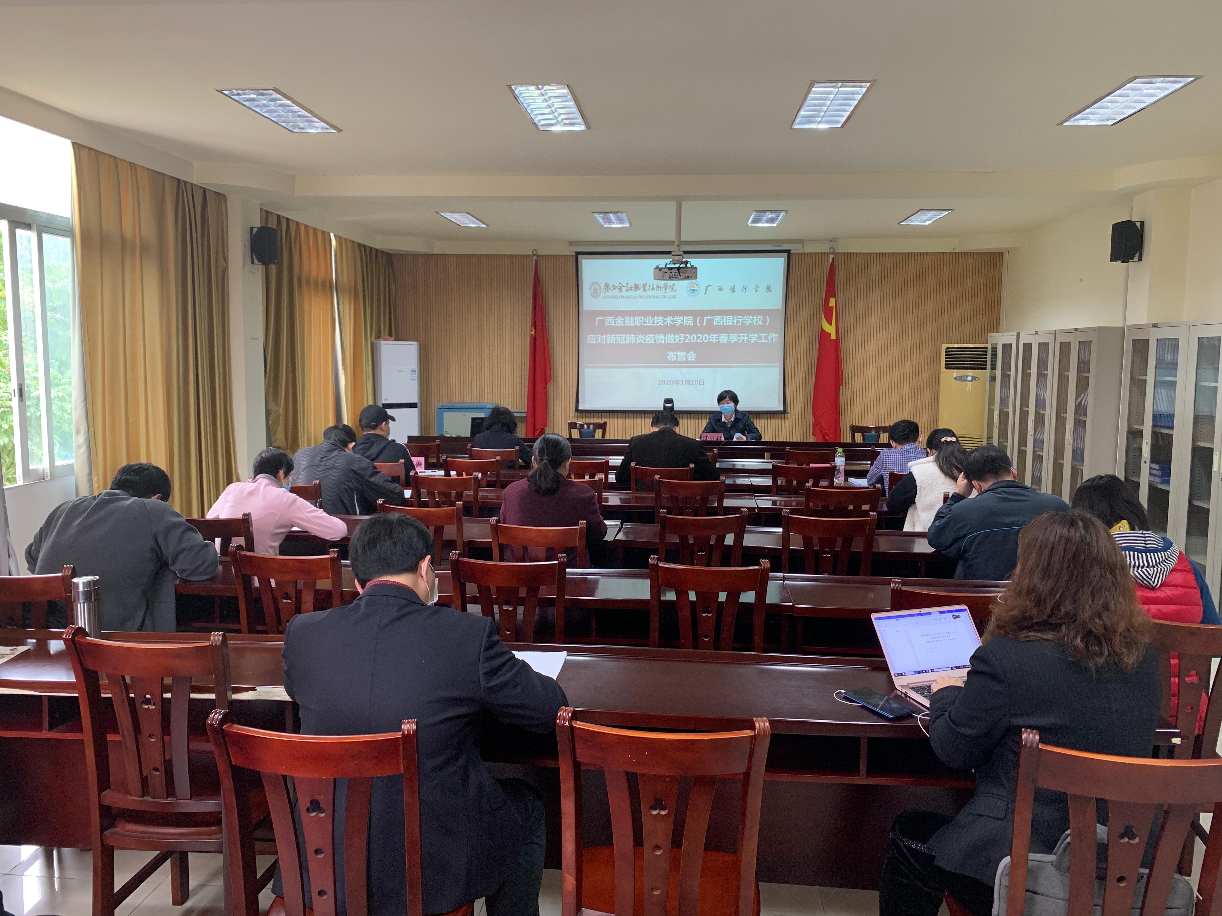 视频会议后,学校党委书记沈立君组织召开了taptap点点体育(广西银行学校)应对新冠肺炎疫情做好2020年春季开学工作布置会,对学习贯彻2020年全区教育工作电视电话会议精神和学校春季开学准备工作进行了部署。
