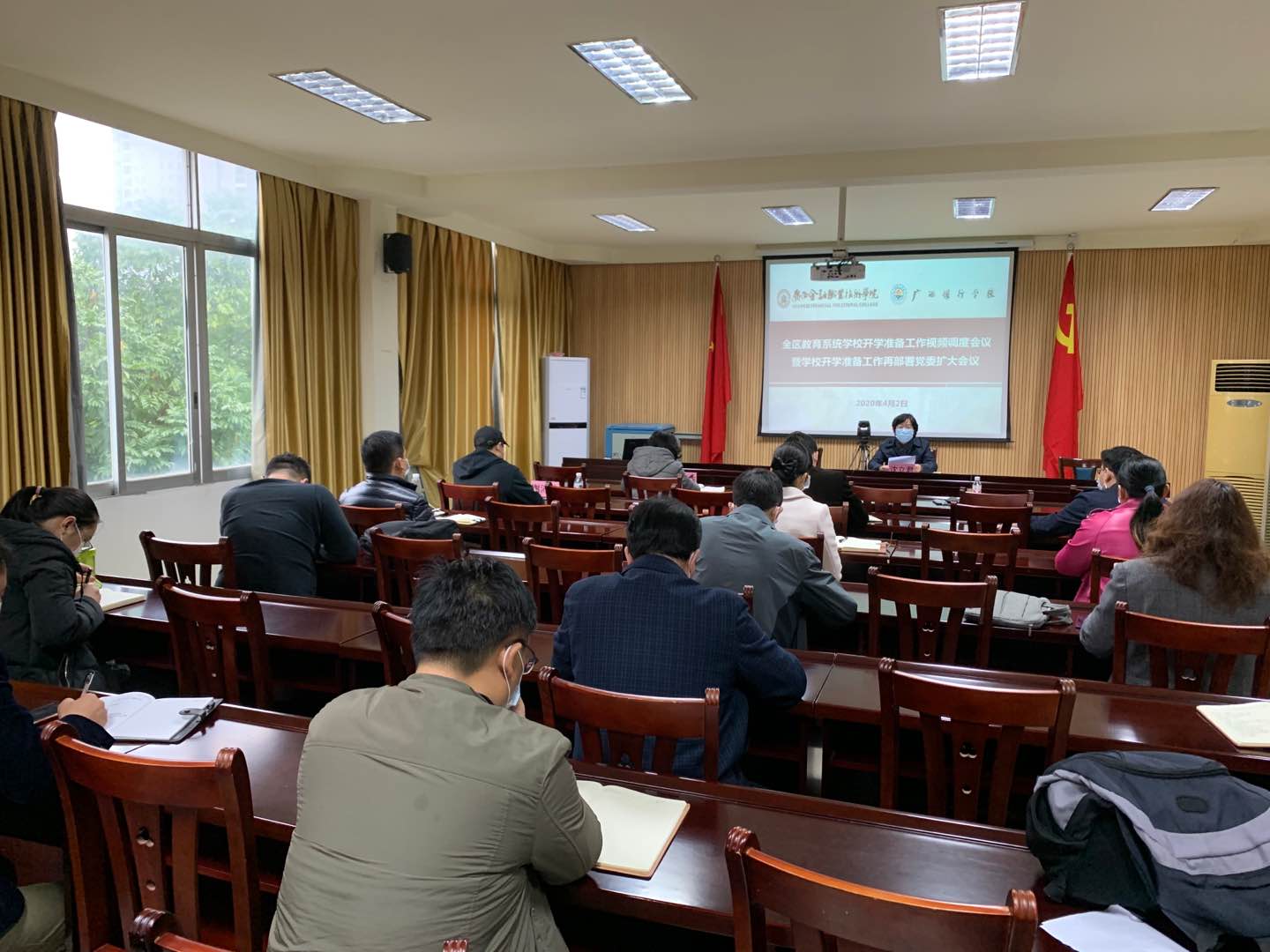 4月2日下午,在全区教育系统学校开学准备工作视频调度会结束后,taptap点点迅速贯彻落实会议精神,及时在taptap点点东校区办公楼6楼会议室召开学校开学准备工作再部署党委扩大会议,校领导、各二层单位主要负责人参加会议。