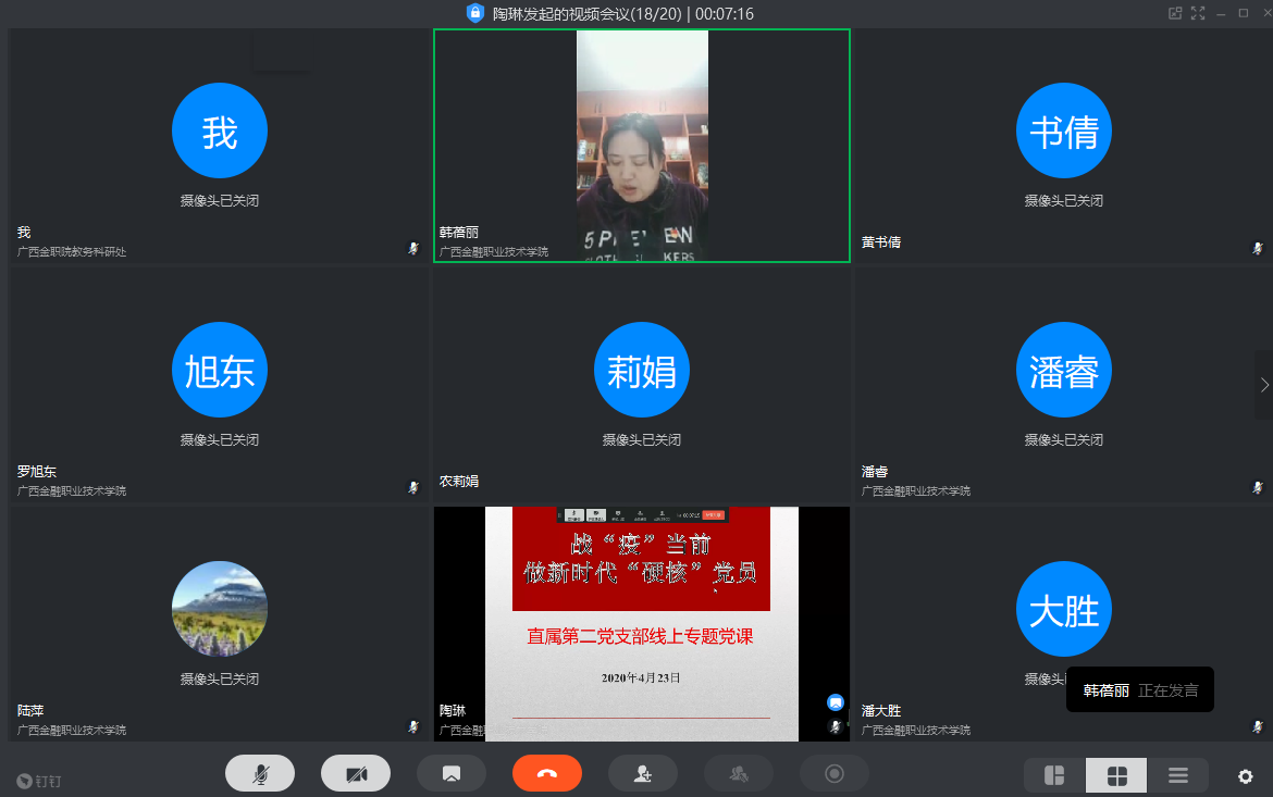 为进一步发挥基层党组织战斗堡垒作用,提高全体党员的思想认识和疫情防控能力。4月23日,直属第二党支部组织开展线上专题党课活动,以视频会形式召开党支部学习会议,支部全体党员参加了学习,潘大胜副校长以普通党员的身份参加党课活动。