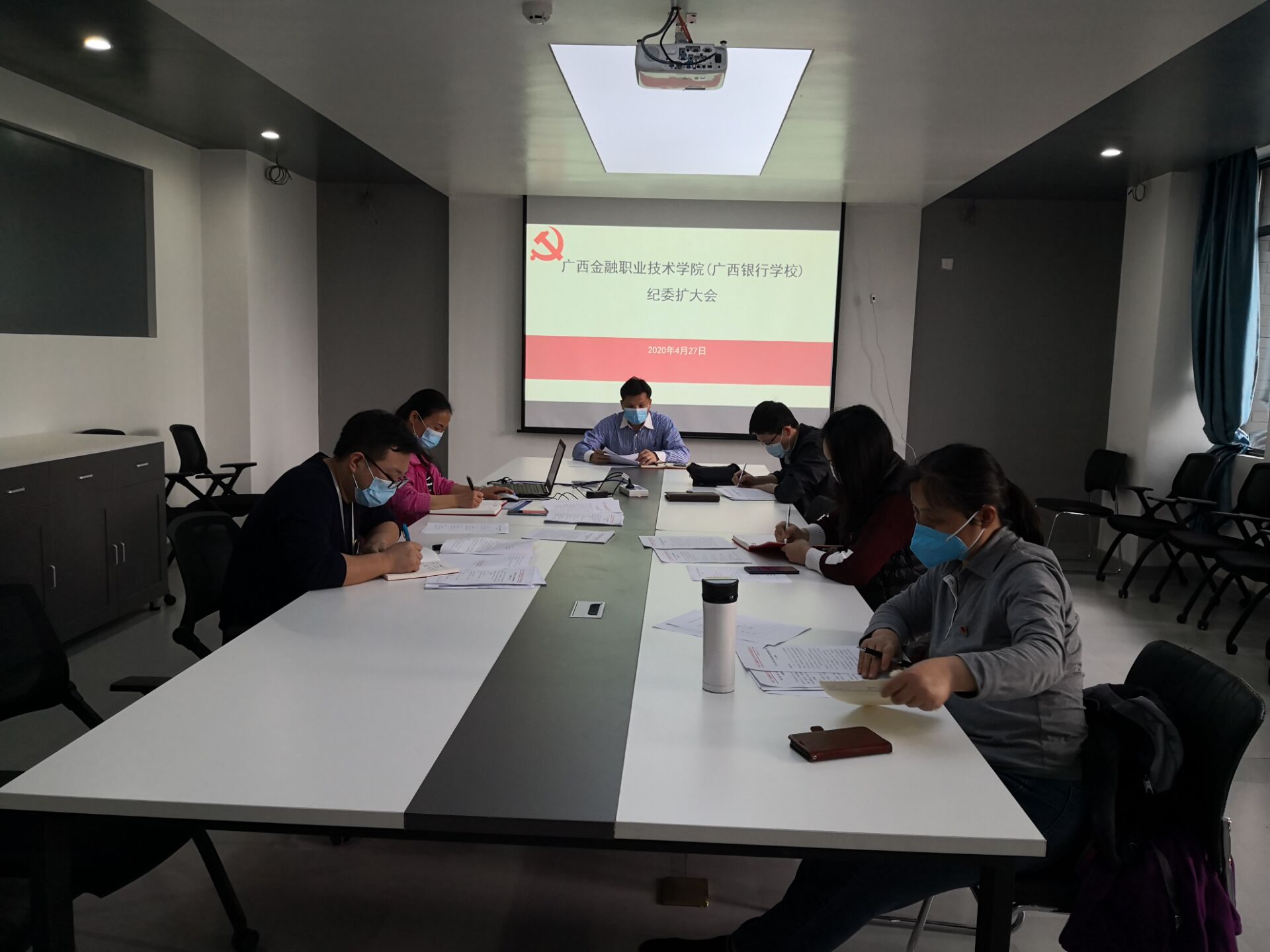 4月27日,taptap点点在西校区行政楼311会议室召开中共taptap点点体育(广西银行学校)纪律检查委员会(扩大)会议,学校纪委委员及纪委监察室副主任参加会议,学校党委副书记、纪委书记刘华政主持会议。