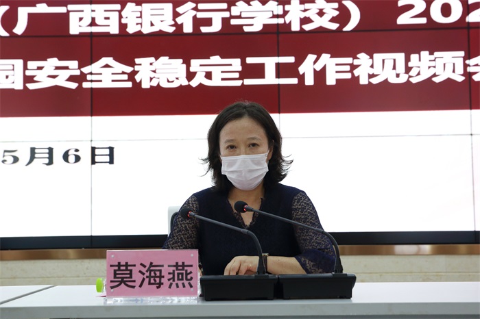 副校长潘大胜在会上作校园安全稳定工作报告,潘副校长回顾了学校2019年安全稳定工作取得的成绩,指出了工作中存在的薄弱环节,并部署了2020年学校安全稳定工作主要任务。他强调,做好安全稳定工作是加强党在学校执政能力、治校治教能力的重要体现,要把师思想统一到学校的中心任务、重点工作上来,共同维护学校安全稳定大局,不断增强师生获得感、幸福感、安全感。