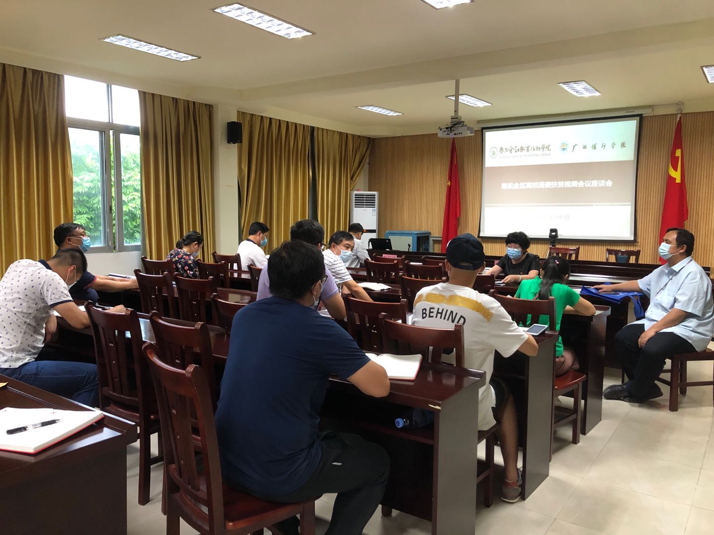 6月5日,在自治区教育厅组织召开的2020年全区高校消费扶贫工作视频会议结束后,taptap点点立即组织召开落实全区高校消费扶贫视频会议精神座谈会,及时传达2020年全区高校消费扶贫工作视频会议精神。学校党委书记沈立君、党委副书记、纪委书记刘华政、组织人事处、后勤管理与保卫处、财务处、工会等部门负责人以及派驻都安县的6名驻村第一书记参加座谈会。