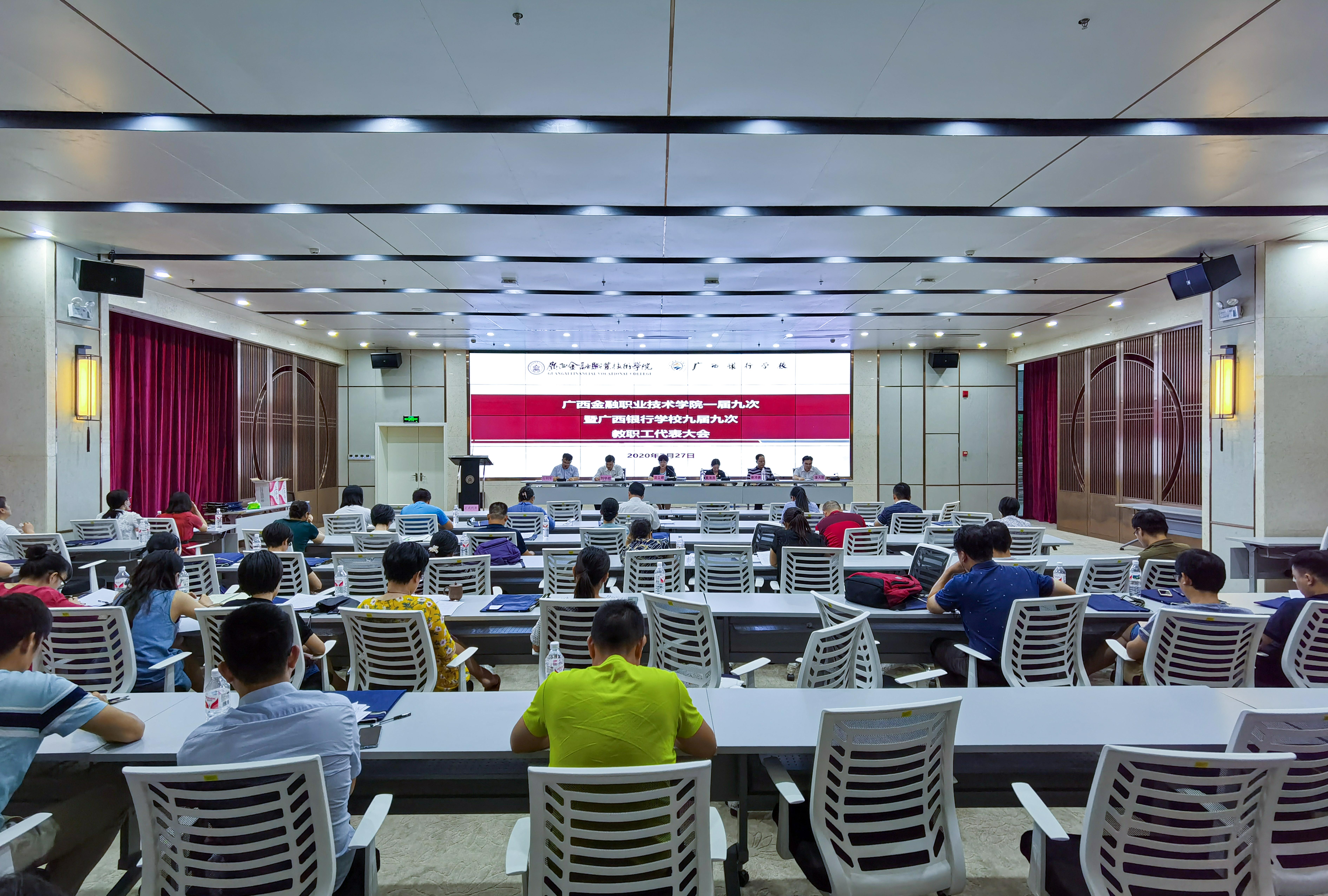 7月27日,taptap点点体育一届九次暨广西银行学校九届九次教职工代表大会在西校区道德大讲堂召开。40名正式代表和22名列席代表参加会议。会议由工会主席石利军主持。