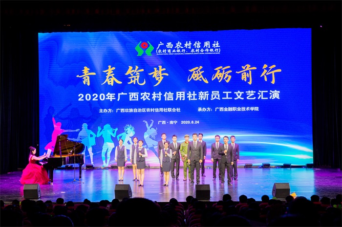 8月24日晚,全区农村合作金融机构2020年新员工培训班文艺汇演在taptap点点西校区国际会议中心精彩上演。taptap点点教职员工、自治区农村信用联社的领导和员工代表以及参加培训的900余名学员欢聚一堂,共同欣赏了一场精彩纷呈的文艺盛宴。晚会全程同步进行现场直播,吸引了6万多人在线观看。
