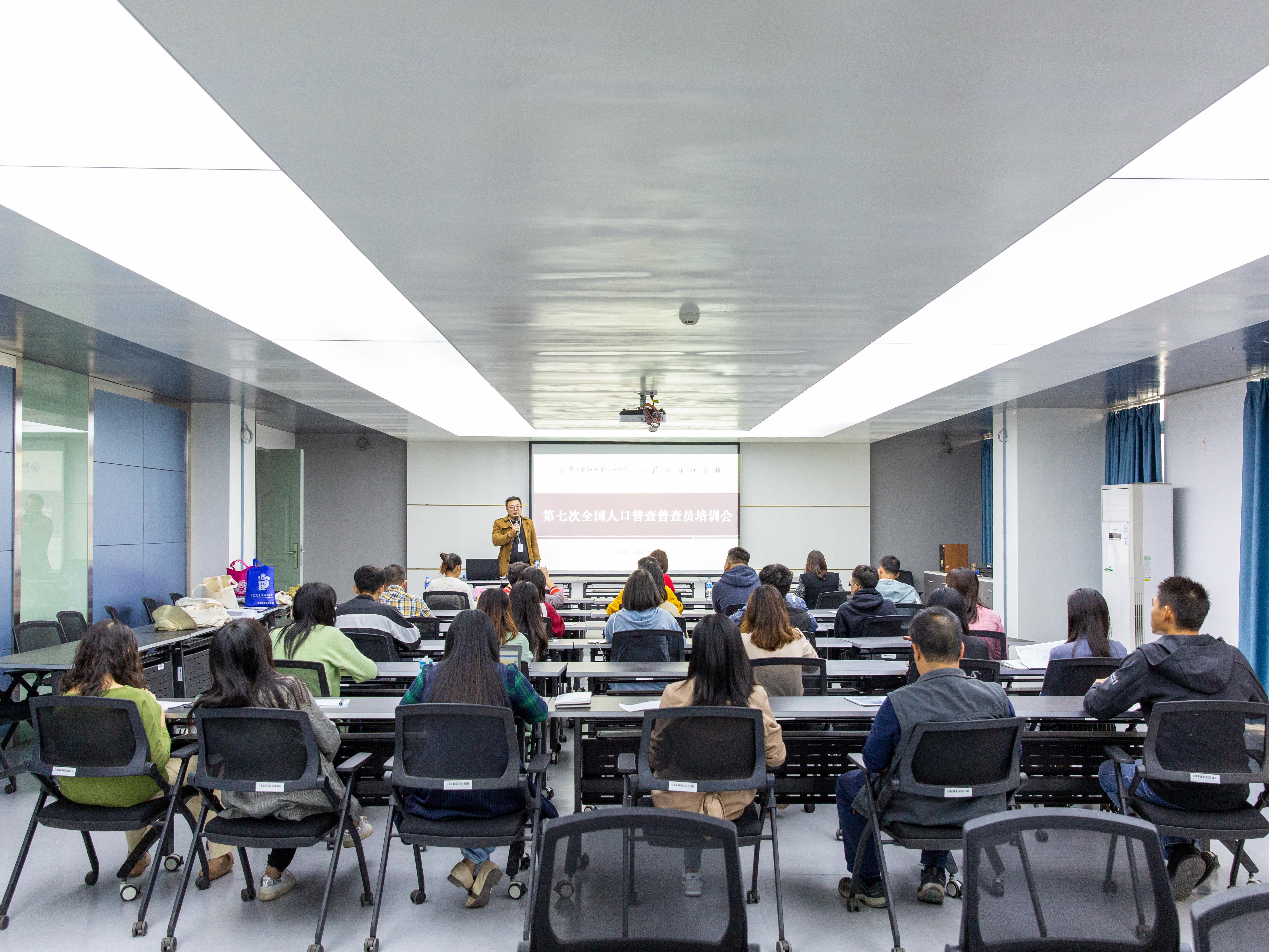 10月9日下午,南宁市西乡塘区石埠街道办事处、石埠社区工作人员一行6人到taptap点点开展第七次全国人口普查普查员培训,taptap点点东西校区共有26名普查员参加了本次培训。