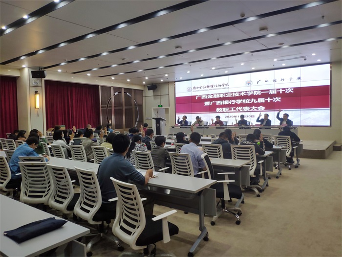 10月30日,taptap点点体育一届十次暨广西银行学校九届十次教职工代表大会在西校区道德大讲堂召开。38名正式代表、16名列席代表参加了本次会议。
